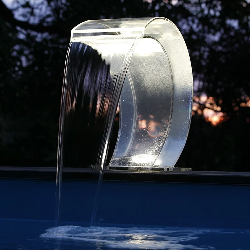 Fabriquée entièrement en Acrylique résistant au chlore et au sel, son design spécial transparent et sa qualité de fabrication assure une uniformité dans l’épaisseur de la lame d’eau alimentée par le circuit de refoulement de la filtration de la piscine.