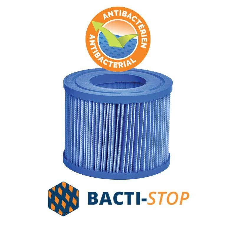 Privilégiez les cartouches de filtration antibactériennes Netspa et conservez une eau plus propre grâce à leur conception unique Bacti-stop. En plus de retenir les impuretés de l’eau avec une finesse de filtration exceptionnelle, elles filtreront jusqu’à 98% des bactéries contenues dans l’eau pour que votre eau reste plus saine, plus longtemps. Grâce à elles, évitez un encrassement de la tuyauterie et favorisez votre confort pour profiter le plus souvent possible de votre spa gonflable ou semi-rigide Netspa tout au long de l’année.