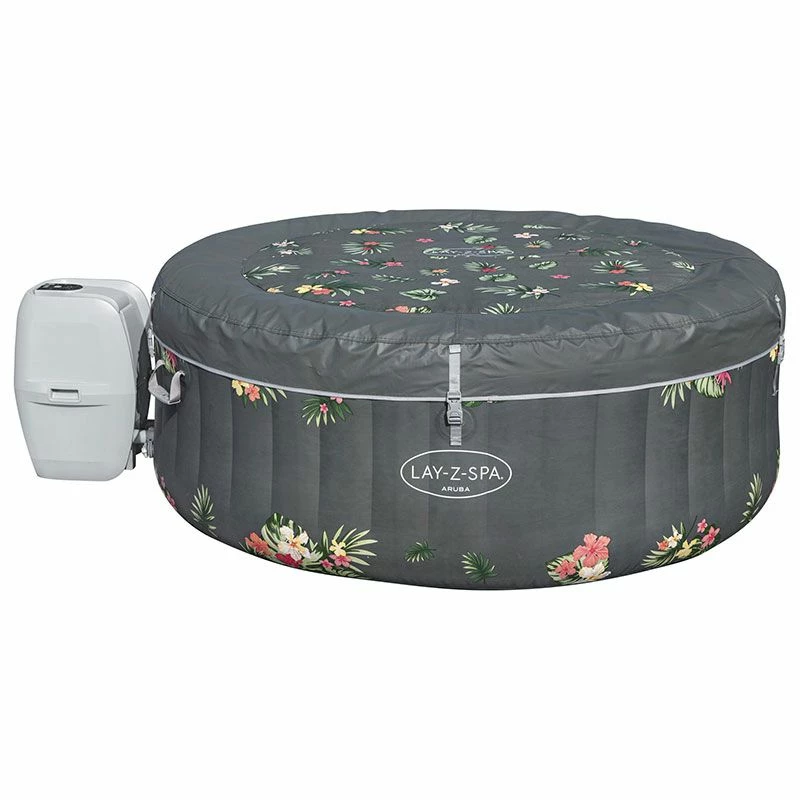 Avec ce spa gonflable Aruba Airjet, Bestway ose l’habillage à motif plus affirmé qui permet de reconnaître chaque modèle au premier coup d’oeil. Le spa Aruba conserve les essentiels de la gamme avec une structure Duraplus robuste et un bouclier antigel intégré, mais il se différencie clairement en termes de design. Que vous soyez utilisateur néophyte ou confirmé, le modèle Bestway Aruba Airjet ne vous laissera pas de marbre et retiendra votre attention dès le premier regard. Le soin apporté à l’habillage de la stucture saute au yeux tant l’imprimé est qualitatif. Le rebord supérieur de la structure gonflable ainsi que les parois intérieures sons de couleur blanc uni et le fond motif mosaïque, ce qui renforce l’élégance de ce modèle face aux spas d’entrée de gamme fabriqués par les autres marques. Le fond mousse est un atout supplémentaire de ce spa gonflable qui vous permet de profiter d’une assise plus confortable et agréable pour une séance de relaxation et de détente optimale.