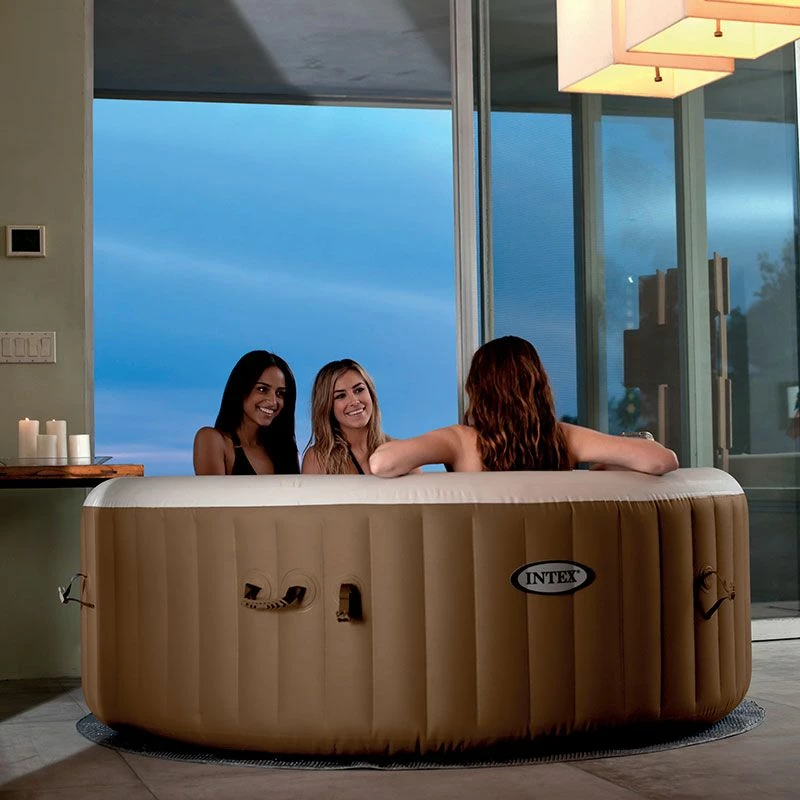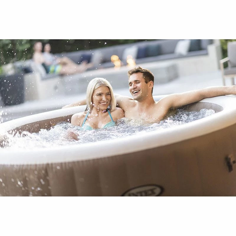 Le spa Sahara bulles 4 places vous permettra de réduire le stress et la pression de vos journées en vous offrant des moments de détente quotidiens sans quitter la douceur de votre foyer. La montée en température est rapide et vous permet de profiter d’une eau chauffée jusqu’à 40 degrés lorsque vous le souhaitez. La fiabilité de sa conception et de sa fabrication Intex sont reconnus. Avec sa forme ronde, son design épuré et sa couleur tendance, c’est un spa gonflable incontournable sur le marché.