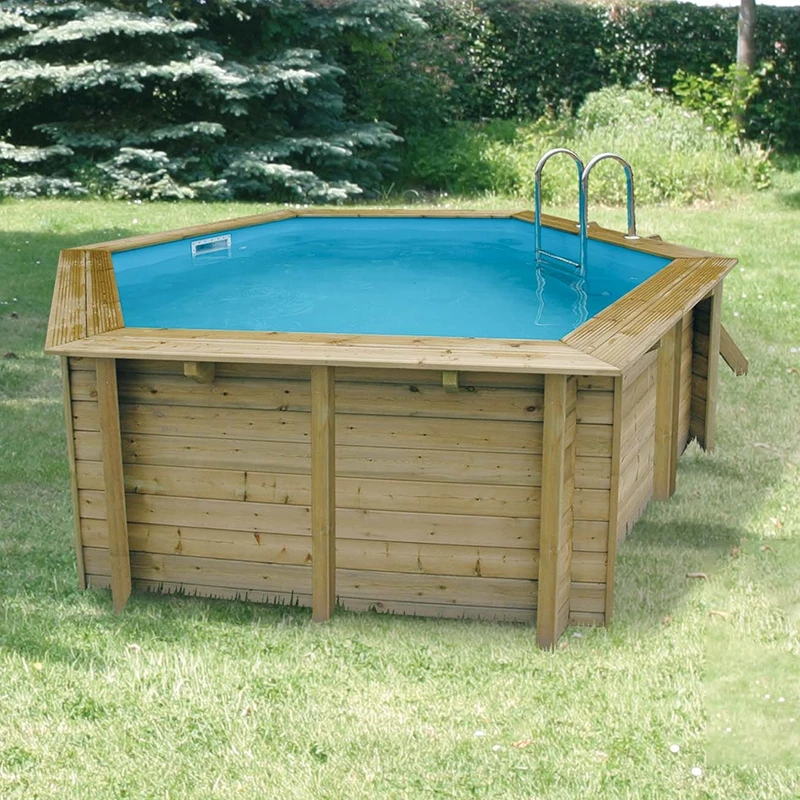 La structure des piscines Ubbink est en Pin du Nord, provenant des régions froides du nord de l’Europe. Les margelles des piscines sont en Sapin blanc du Nord. Là-bas, la rigueur du climat engendre des conditions de pousse particulièrement difficiles pour les arbres. Cela confère au bois un grain très fin, la présence de nœuds plus petits et une résistance mécanique parmi les meilleures essences résineuses. Ces bois, contrairement à d’autres, ne sont pas naturellement durables en usage extérieur. Ils bénéficient néanmoins d’une caractéristique intéressante : ils sont imprégnables. Cela signifie que l’on peut faire pénétrer un traitement fongicide et insecticide dans le bois, pour lui conférer une résistance extrêmement efficace contre les attaques d’insectes, champignons et termites.