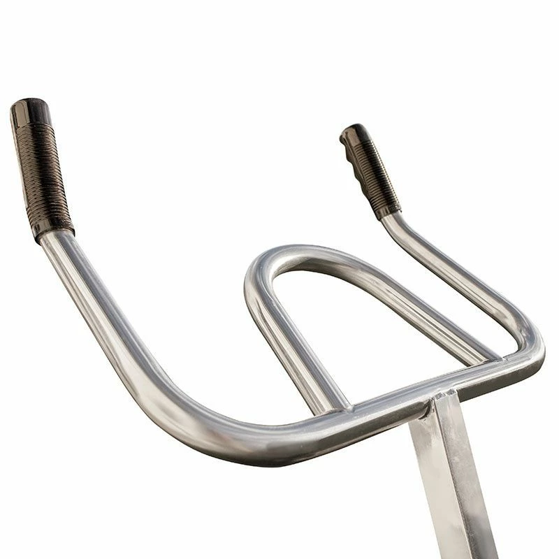 Fabriqué en acier inoxydable de type AISI-316, vous avez la garantie d’avoir un matériel résistant, conçu spécifiquement pour un usage en piscine et qui sera durable dans le temps. Les écrous d’ajustement de niveau sur les extrémités des pieds vous permettront de réaliser un équilibrage efficace du vélo tandis que la hauteur de l’assise pourra aussi être réglée afin de s’adapter aux piscines de hauteur 1m à 1,50m. Ergonomique, le pédalier et le guidon sont eux aussi modulables pour une personnalisation de la position d’utilisation pour un confort optimal.